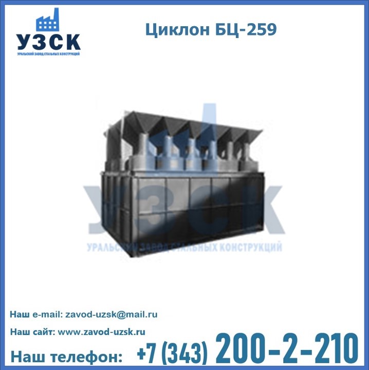 Приобрести качественное оборудование, в том числе, циклоны БЦ-259, можно в компании УЗСК в Туркестане. Мы предлагаем долговечную и надежную продукцию по приемлемой цене. Заказать и купить циклоны или другие изделия высокого качества можно через сайт Уральского Завода Стальных Конструкций, или позвонив по указанному в разделе «Контакты» телефону.