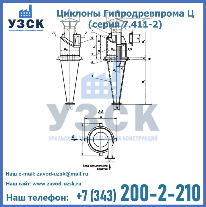 Циклоны Гипродревпрома Ц (серия 7.411-2) высокого качества можно купить в компании «УЗСК» в Туркестане. Наши специалисты предоставят всю необходимую информацию информацию и помогут с выбором модели циклона. Подробные технические характеристики, конструкцию, параметры, ассортимент и стоимость продукции можно также найти на сайте УЗСК.