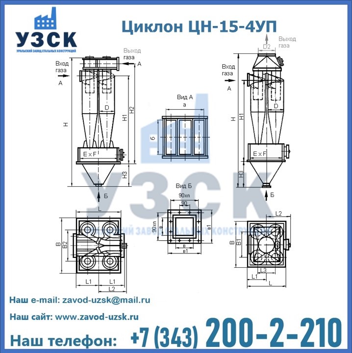 Завод «УЗСК» в Туркестане предлагает большой выбор циклонов ЦН-15-900×4УП и прочих устройств, полностью укомплектованных и готовых к эксплуатации. Мы гарантируем соответствие оборудования всем требованиям ГОСТ и ТУ, износостойкость и высокую производительность предлагаемого оборудования. Уральский Завод Стальных Конструкций изготавливает и продает надежное, эффективное и производительное оборудование, имеющее длительную гарантию и большой эксплуатационный ресурс. Если требуется изготовить циклон нестандартных размеров, то такой вариант выполнения заказа тоже предусмотрен, так как предприятие имеет собственные производственные площади и надежных поставщиков. На все поставляемое или производимое оборудование имеются чертежи и прочая техническая документация. Заказать и купить циклоны или прочее оборудование высокого качества и по доступной цене можно через наш сайт или по указанному в разделе «Контакты» телефону.
