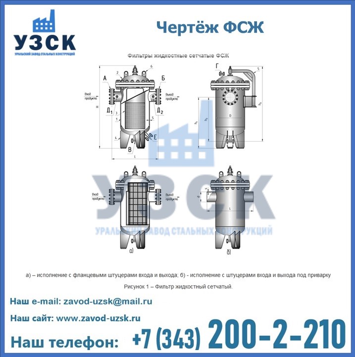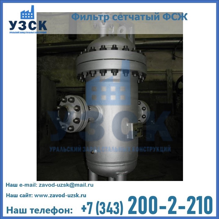 Очистку перекачиваемых жидкостей на предприятиях нефтяной, пищевой, горнорудной, фармацевтической и других отраслей промышленности эффективно выполнять с помощью жидкостного сетчатого фильтра — емкостное оборудование цилиндрической формы со съемной крышкой и элементом фильтрации внутри. Оснащенные им всасывающие линии насосных станций и установок защищены от проникновения твердых частиц в функциональные узлы гидравлической системы. Оборудование служит для перекачивания токсичных, агрессивных и иных эмульсий, суспензий, жидкостей. Купить фильтр сетчатый жидкостный ФСЖ в Туркестане с гарантией производителя предлагает «Уральский завод стальных конструкций». Мы выполняем проектирование и изготовление ФСЖ по индивидуальным требованиям (климатическая зона, транспортируемая жидкость).